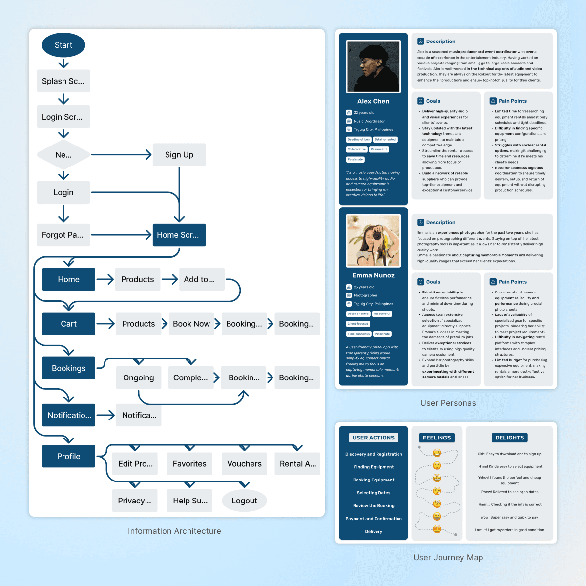 The challenge was to design a mobile app that offers an exceptionally easy and reliable way for users to rent a wide array of audiovisual equipment, from cameras to sound systems. A key focus was ensuring a frictionless user experience, instilling trust in the rental process, and providing detailed, accurate equipment information on a mobile interface.