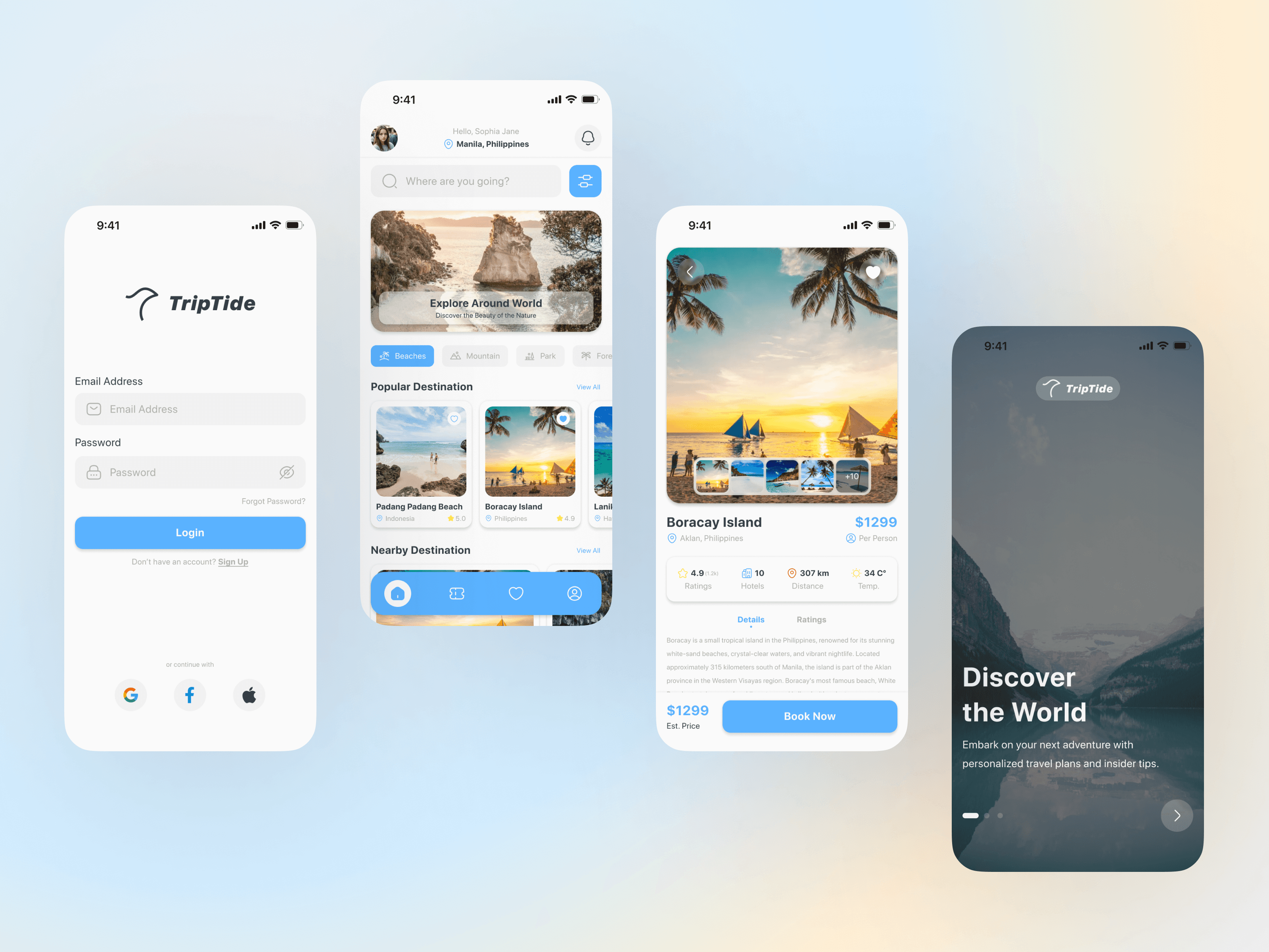 This project involved designing and developing Triptide, an innovative mobile app aimed at revolutionizing the travel planning and booking experience. The goal was to create a seamless, intuitive, and highly personalized system that simplifies complex travel logistics directly from a user's device. Triptide ultimately delivers a visually inspiring and reliable mobile tool, transforming the entire journey from discovery to destination.